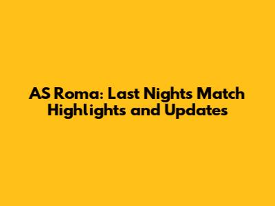 AS Roma: Last Night's Match Highlights And Updates