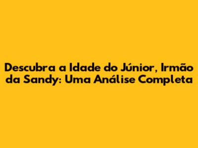 Descubra A Idade Do Júnior, Irmão Da Sandy: Uma Análise Completa