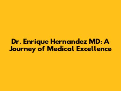 Dr. Enrique Hernandez MD: A Journey Of Medical Excellence