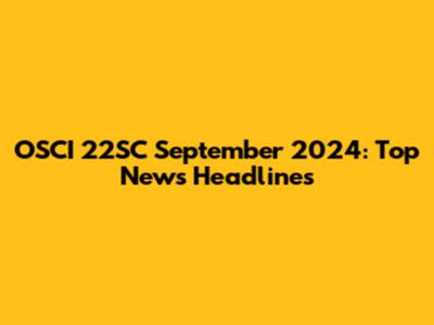 OSCI 22SC September 2024: Top News Headlines