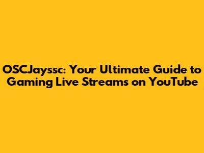 OSCJayssc: Your Ultimate Guide To Gaming Live Streams On YouTube