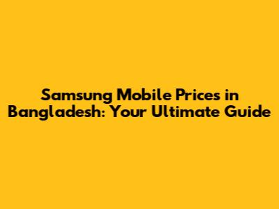 Samsung Mobile Prices In Bangladesh: Your Ultimate Guide