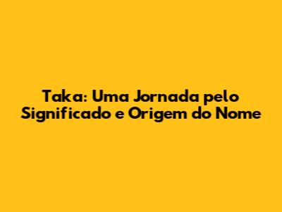 Olá, pessoal! Se você está aqui, provavelmente está curioso sobre o significado do nome Taka. Que bom que você veio! Hoje, vamos mergulhar fundo na história e nas nuances por trás desse nome interessante, explorando suas origens, variações e o que ele pode revelar sobre a personalidade de quem o carrega. Preparem-se para uma viagem cultural e linguística que vai além do simples significado literal. Vamos descobrir juntos as camadas que compõem o nome Taka e entender por que ele ressoa com tantas pessoas.