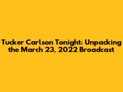 Hey everyone, let's dive into the Tucker Carlson Tonight episode from March 23, 2022! This particular show, like many others, generated a lot of buzz and sparked some serious conversations. We're going to break down the key topics, the arguments presented, and why it all mattered. Buckle up, because we're about to explore the world through Tucker's lens and see what he and his guests had to say. We'll examine the substance of the claims, the context surrounding them, and maybe even touch upon the reactions they spurred. Ready to get started?