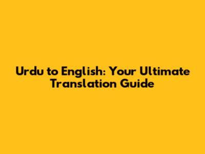 Urdu To English: Your Ultimate Translation Guide